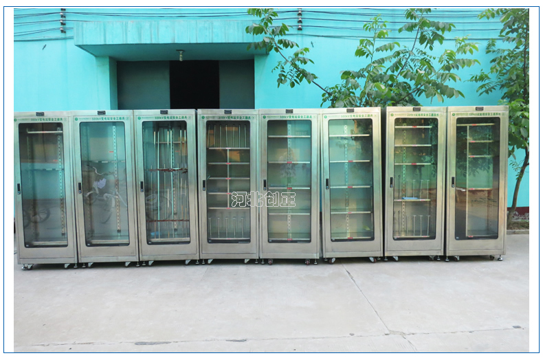 1、柜體是冷軋鋼板卷壓成型,厚度有1.0mm,1.2mm,1.5mm供選擇。柜體表面采用靜電防腐噴塑工藝,顏色為駝灰色,柜門裝有通體透明鋼化玻璃,透過玻璃可以看到分類有序的工器具。