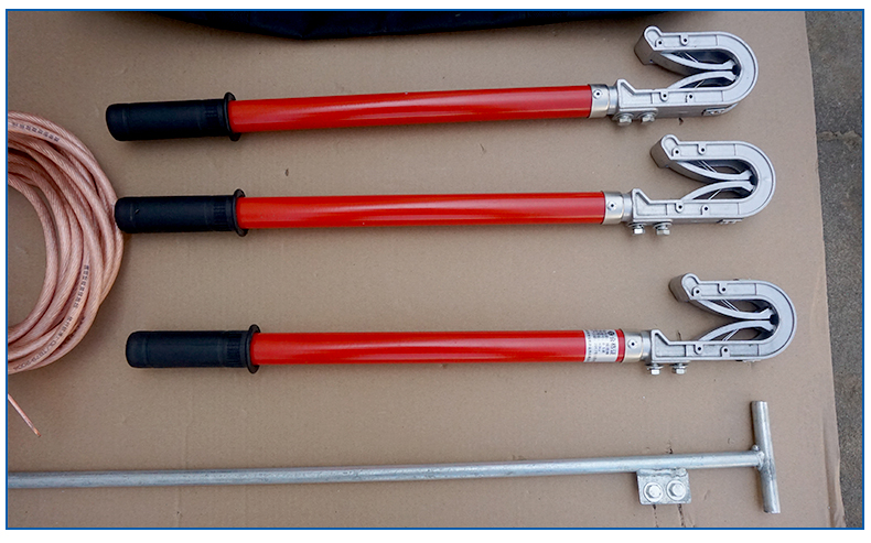 (3)制作工藝: 導(dǎo)線夾、接地夾采用鋁合金或紫銅壓鑄成形;操作棒是玻璃鋼環(huán)氧樹(shù)脂管;接地軟銅線采用多股軟銅線絞合而成,外覆透明絕緣護(hù)層。