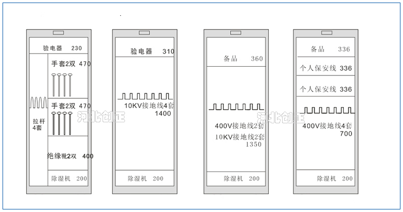 2、智能型安全工具柜裝有溫濕度顯示表和控制操作面板,顯示溫濕度和設備運行狀態(tài)。柜底可選擇安裝萬向輪和定位螺桿;柜頂可選擇安裝吊杯,方便運輸。應用于不同溫濕度地區(qū)的不同電壓等級的變電站、集控站、線路工區(qū)以及電力公司等單位。