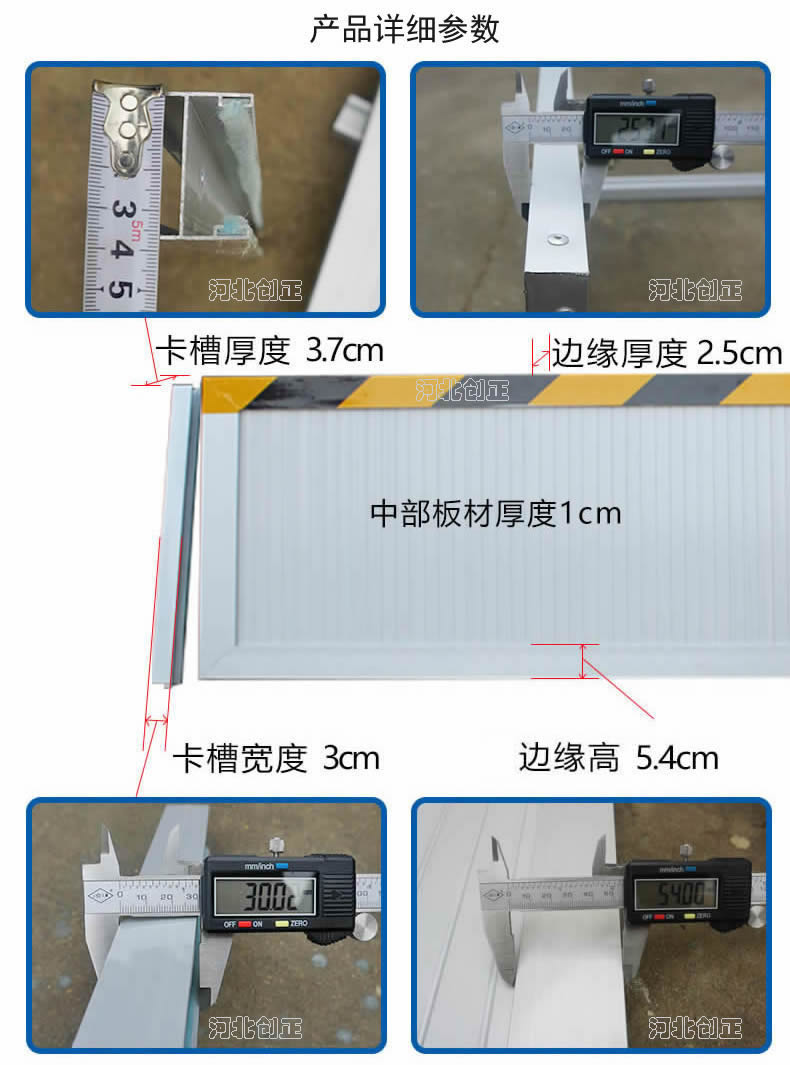 鋁合金擋鼠板采用鋁合金板材制做。擋鼠板上部貼黃黑相間反光條,反光條為反光膜加背膠紙制作。